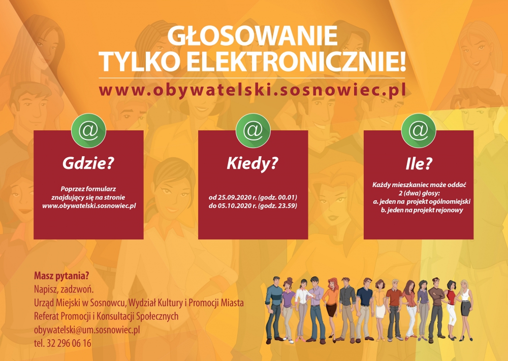 W razie problemów i pytań zgłoś się do Wydziału Kultury i Promocji Miasta, napisz na adres: obywatelski@um.sosnowiec.pl lub zadzwoń 32/296-06-16.