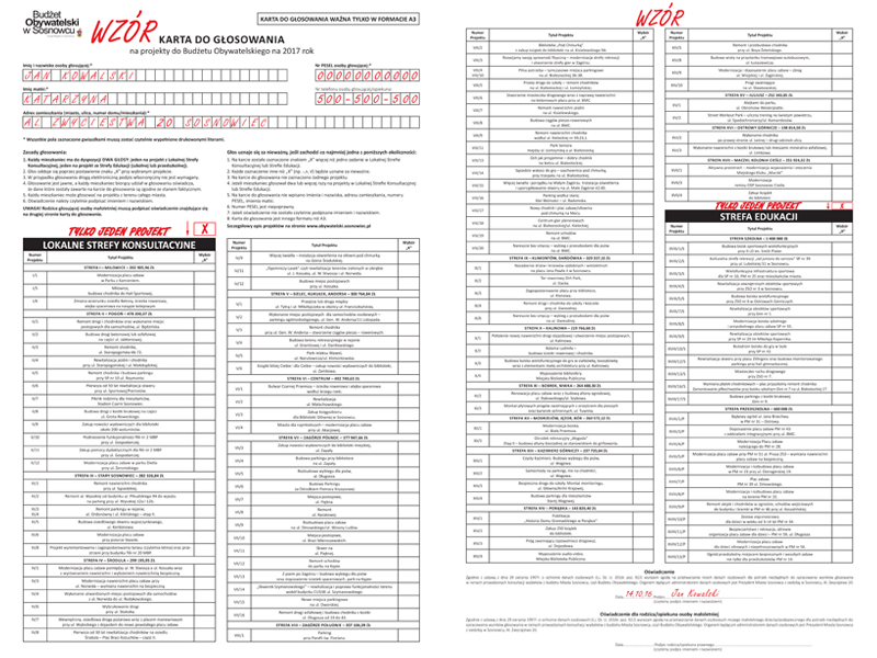 Każdy z mieszkańców może głosować na dwa projekty: na jeden z Lokalnych Stref Konsultacyjnych oraz na jeden ze Strefy Edukacji (projekt szkolny lub przedszkolny).