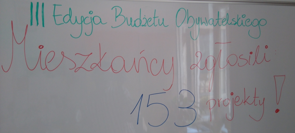 Mieszkańcy do 06 czerwca złożyli 152 projekty (jeszcze kilka dni czekamy na projekty, które moga dotrzeć drogą pocztową). Suma złożonych projektów przekracza kwotę 20 milionów zł. Kreatywność mieszkańców przekroczyła nasze oczekiwania. W tym roku zadania dotyczą między innymi : pikników rodzinnych, rewitalizacji skwerów, renowacji brzegu Przemszy, ścieżek rowerowych, odnowy ulic czy budowy wybiegów dla psów. Są również wśród nich takie perełki jak magiczny labirynt,magiczny dywan, rowerowe miasteczka komunikacyjne, tor rowerowy czy wodny plac zabaw.