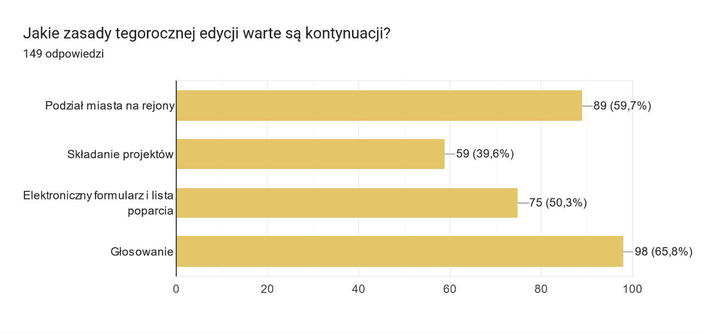 W wyniku przeprowadzonego głosowania do realizacji zostało skierowanych 25 projektów. Poniżej tabela zawierająca tytuły projektów, przyznane kwoty oraz odpowiedzialny za jego realizację wydział merytoryczny.