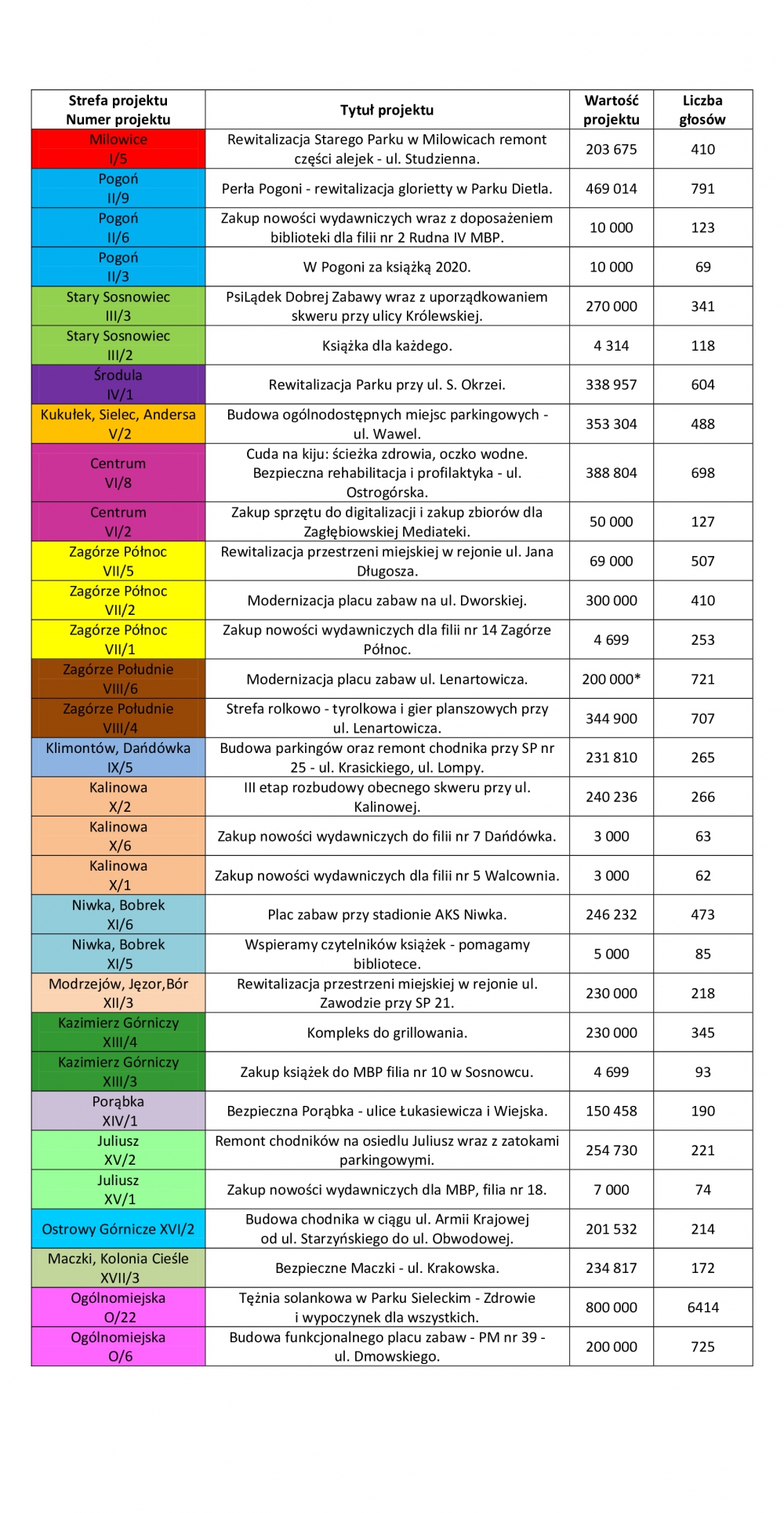 W tegorocznym głosowaniu udział wzięło blisko 22 tys. sosnowiczan uprawnionych do głosowania. Podobnie jak w roku ubiegłym, głosy mogli oddawać wszyscy mieszkańcy miasta, niezależnie od wieku.