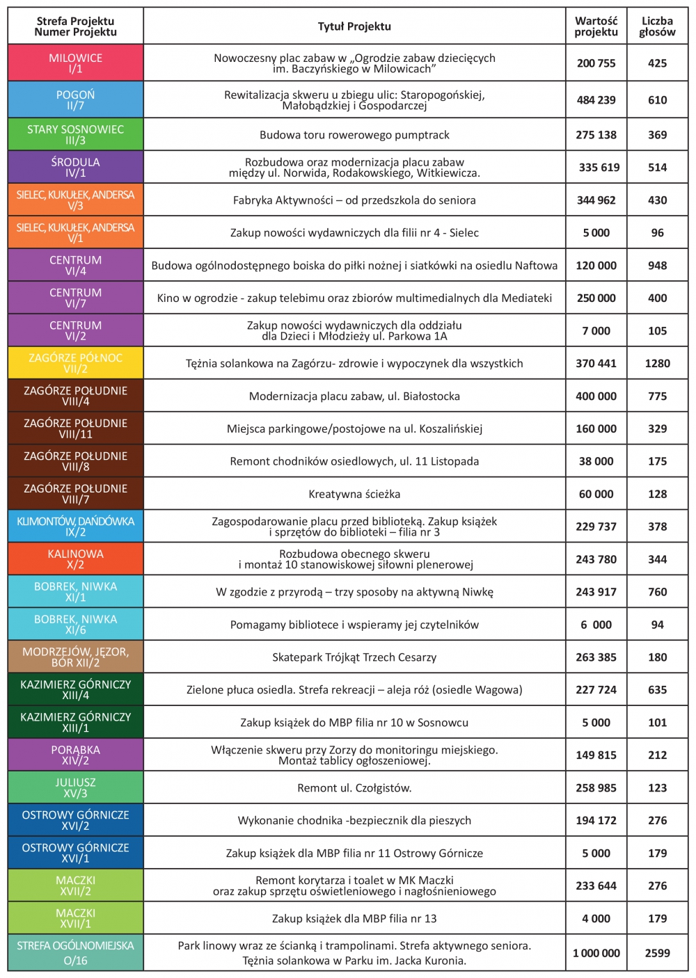 W sumie drogą elektroniczną mieszkańcy Sosnowca oddali 38 652 głosy. Nowością w tegorocznym głosowaniu była możliwość oddania głosu na Strefę Ogólnomiejską.