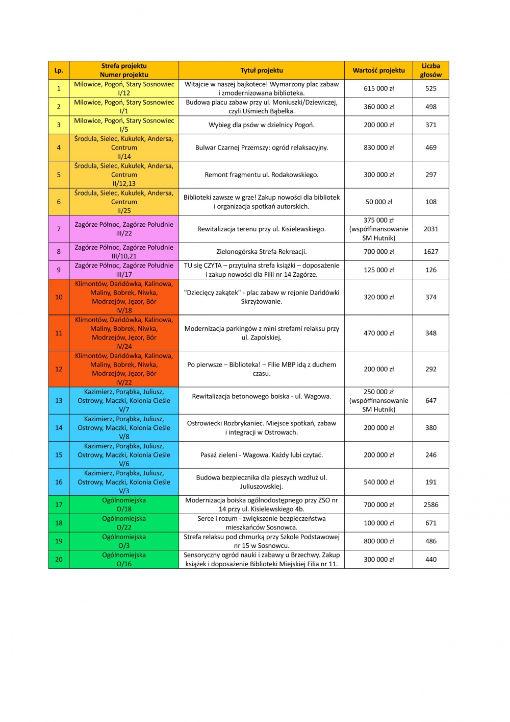 W tegorocznym głosowaniu udział wzięło blisko 22 tys. sosnowiczan uprawnionych do głosowania. Podobnie jak w roku ubiegłym, głosy mogli oddawać wszyscy mieszkańcy miasta, niezależnie od wieku.