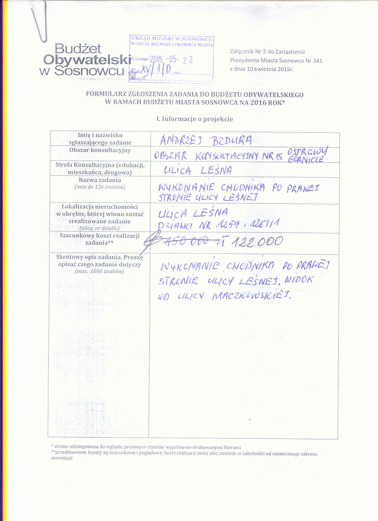 XV/1/D. Wykonanie chodnika po prawej stronie ul. Leśnej